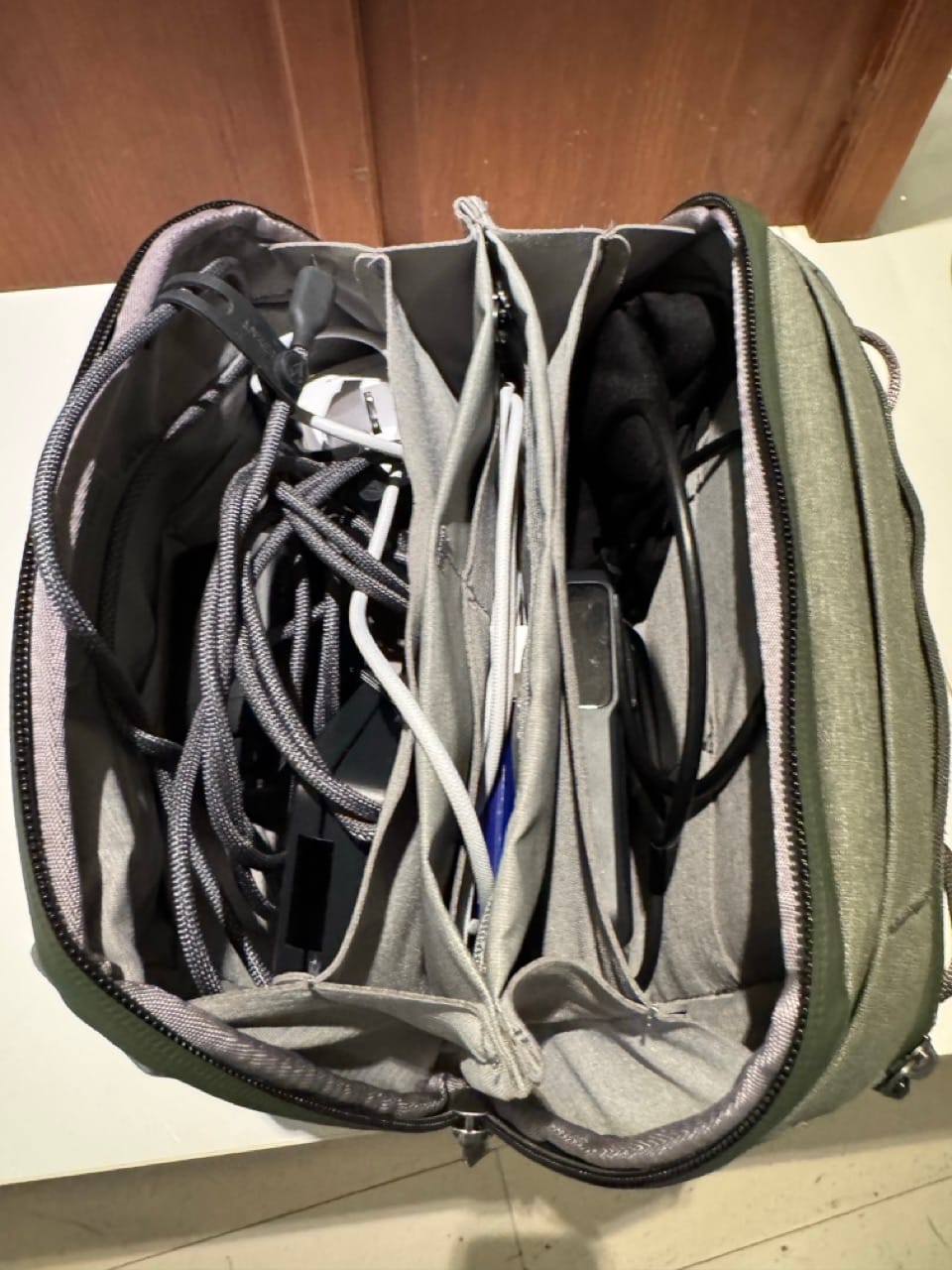 "Which storage/pouch fits all my stuff?" Thankfully, folks on LinkedIn, YouTube and Reddit openly discussed their favorites in pictures and video. After some unsatisfying evaluations, including the UGREEN Electronics Bag Travel Organiser, I decided to focus on innovative design and space, with less focus on price.