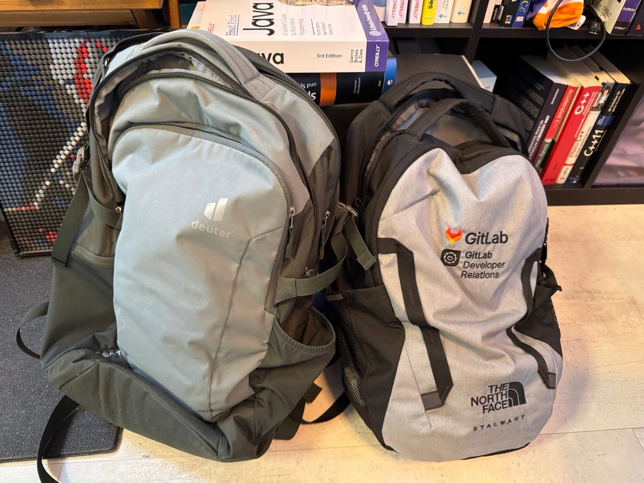 - Backpack, smaller for events/speaking: Northface Stalwart, custom print with GitLab DevRel team (gift).