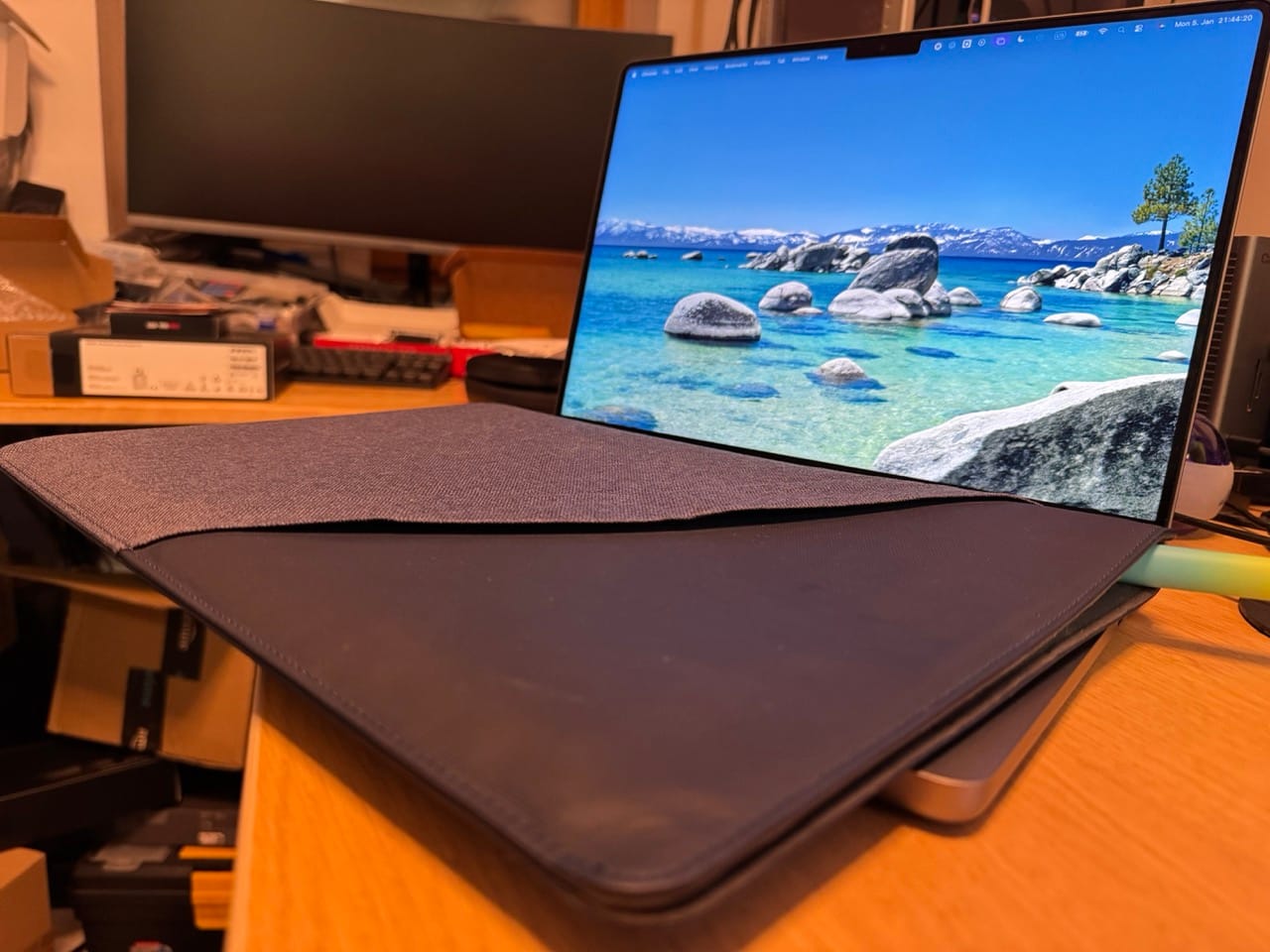 - Macbook sleeve: Native Union Stow Slim, 14", Indigo. It provides a magnetic closure and keeps the Macbook safe - nativeunion.com